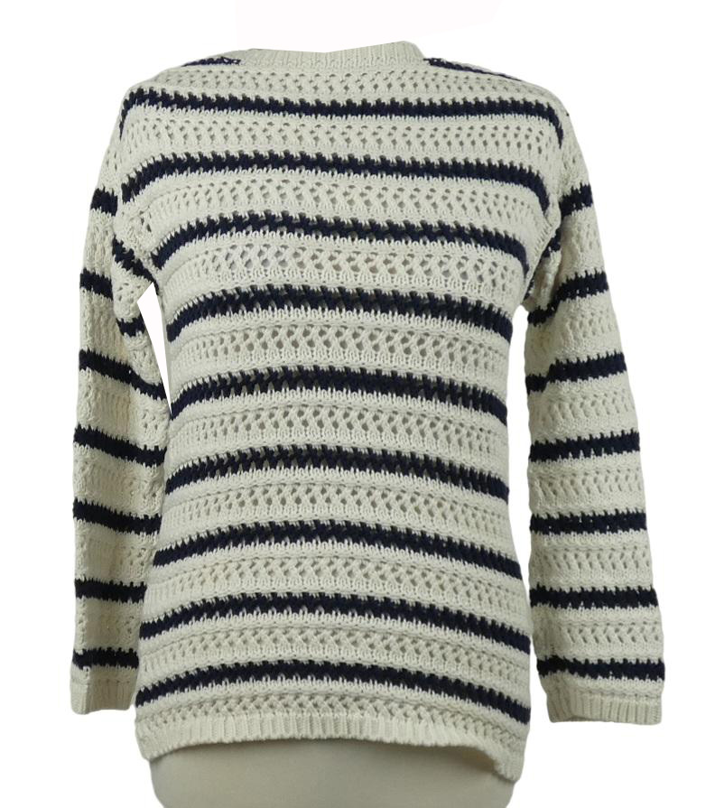 Dámsky bielo-tmavomodrý pruhovaný ažurový sveter F&F