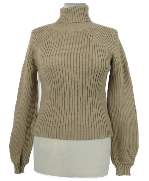 Dámsky béžový rebrovaný sveter s rolákom Shein