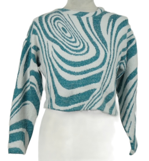 • Dámsky tyrkysovo-biely vzorovaný chlpatý crop sveter Stradivarius