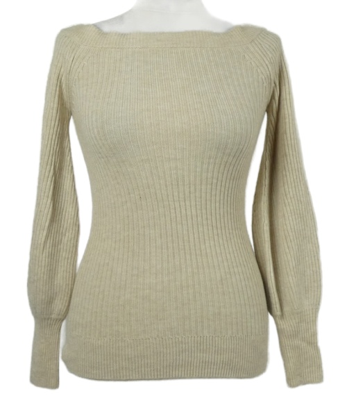 • Dámsky béžový rebrovaný sveter s lodičkovým výstřihem Topshop
