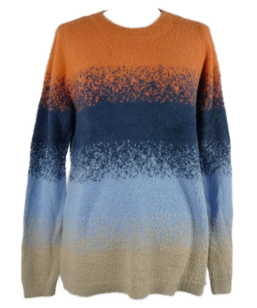 • Dámsky modro-béžovo-oranžový vzorovaný chlpatý sveter Multiblu