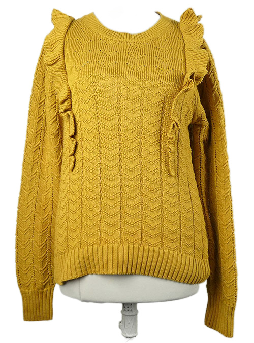 Dámsky okrový vzorovaný sveter s volánikmi M&S