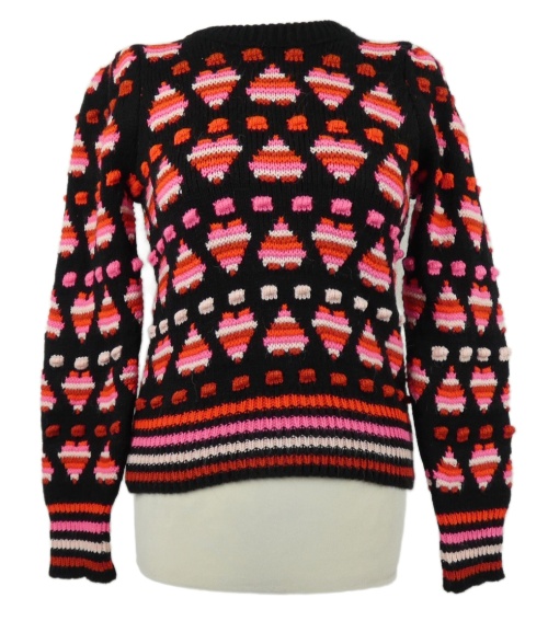 Nové - Dámsky čierno-ružovo-červený srdiečkovaný sveter Savida