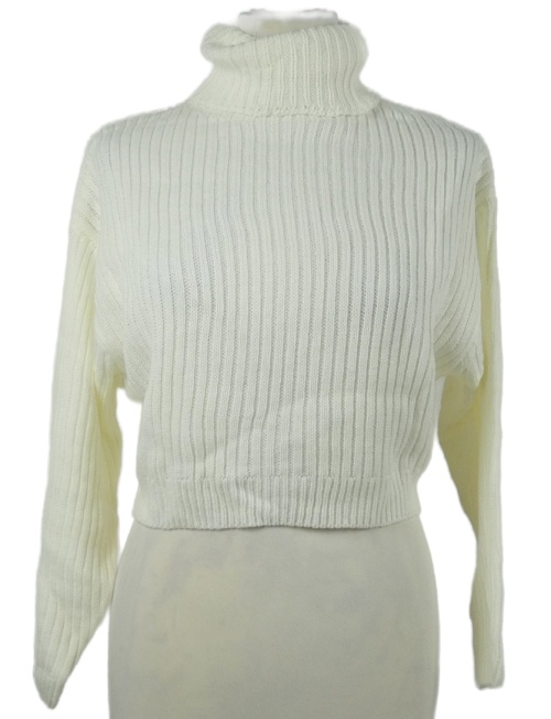 Dámsky smotanový rebrovaný crop sveter s rolákom Shein