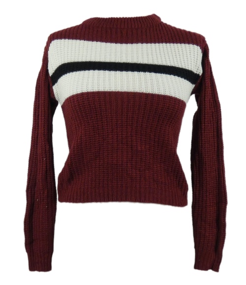 Dámsky vínovo-biely pruhovaný crop sveter Terranova