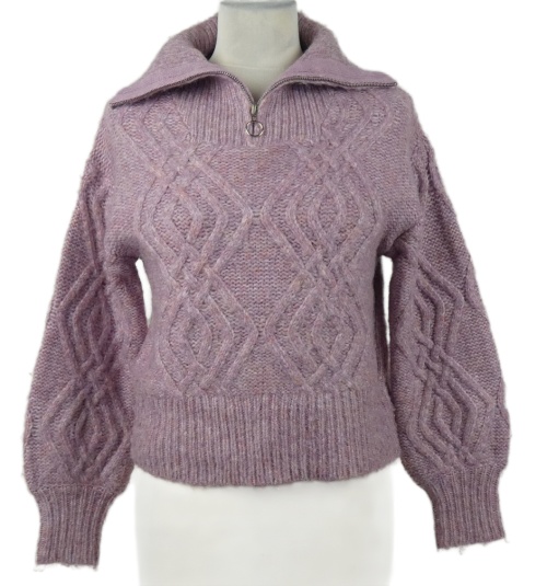 Dámsky lila vzorovaný crop vlnený sveter s golierom George