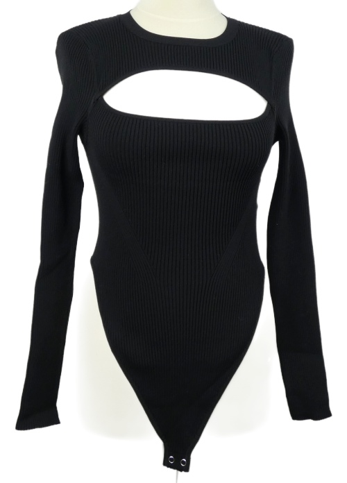 Dámske čierne rebrované pletené body s prestrihom FB Sister
