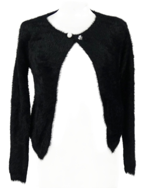 Dámsky čierny chlpatý svetrový cardigán