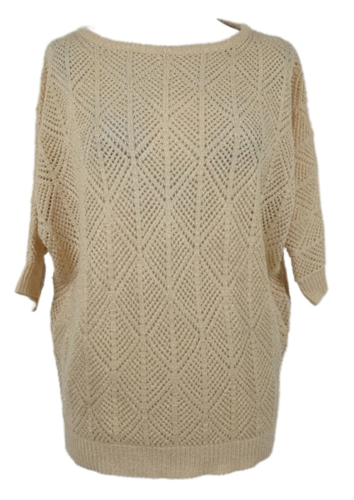Dámsky svetloružový trblietavý ažurový sveter Amisu
