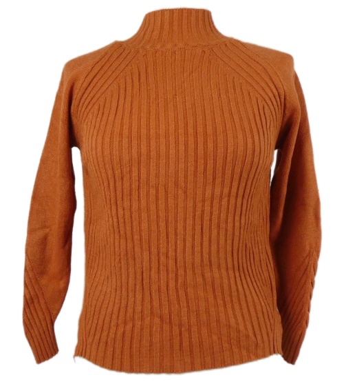 Dámsky tehlový rebrovaný sveter so stojačikom