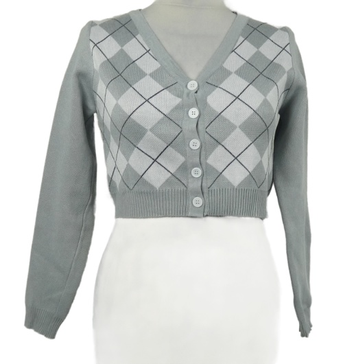 Dámsky sivo-biely károvaný prepínaci crop sveter