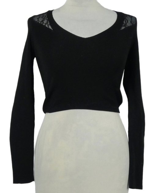 • Dámsky čierny rebrovaný crop sveter s krajkovými zády River Island