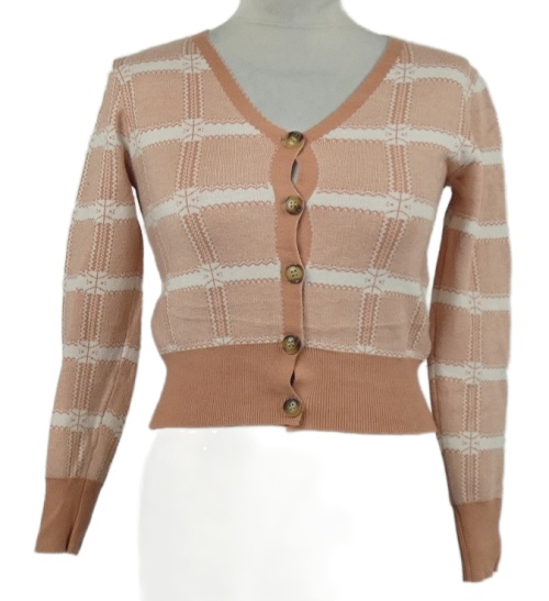 Dámsky ružovo-biely kockovaný crop sveter Shein
