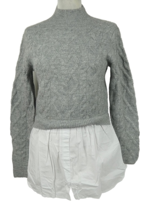 Dámsky sivý sveter s bílou halenkovou vsadkou New Look