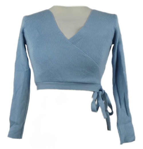 Dámsky svetlomodrý rebrovaný crop sveter s mašlou Shein