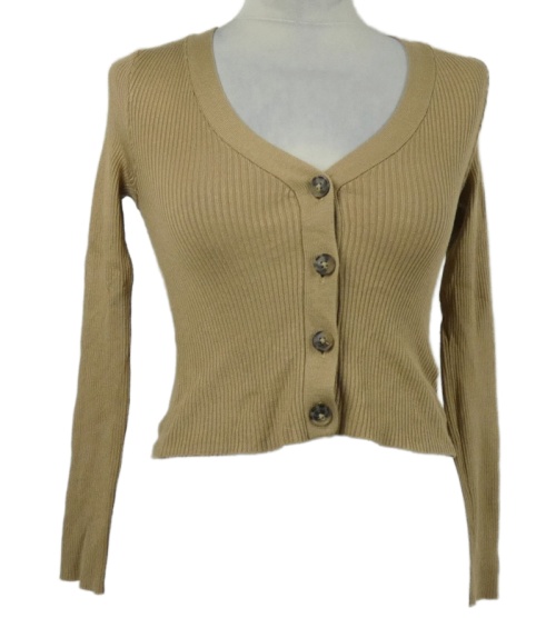 Dámsky béžový rebrovaný crop prepínaci sveter H&M