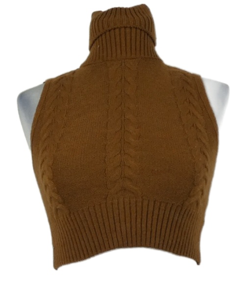 Dámska hnedá vzoroaná crop svetrová vesta s rolákom Shein