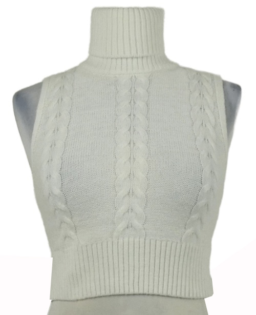 • Dámska smotanová vzorovaná svetrová crop vesta s rolákom Shein