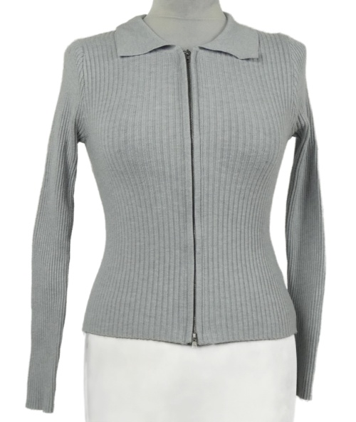 Dámsky sivý rebrovaný prepínaci crop sveter s golierikom