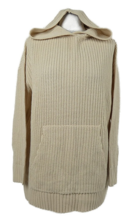 • Dámsky béžový vzorovaný oversized sveter s klokankou a kapucňou Threadbare