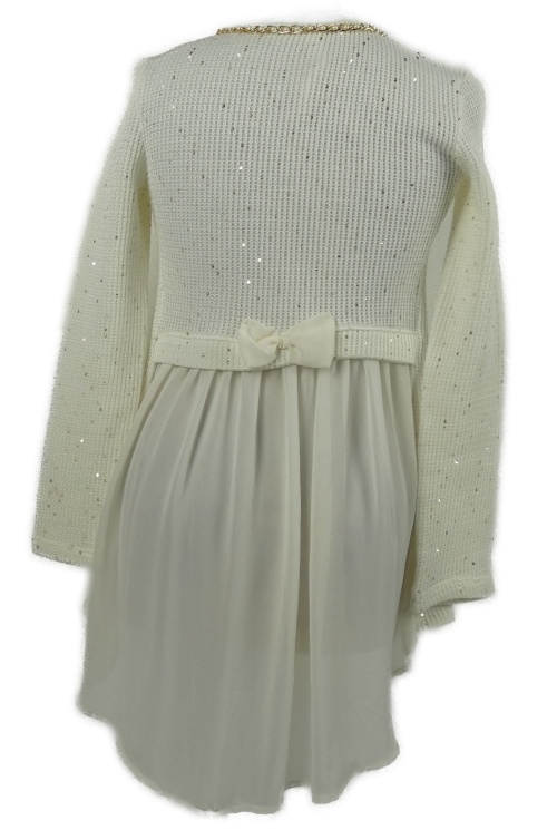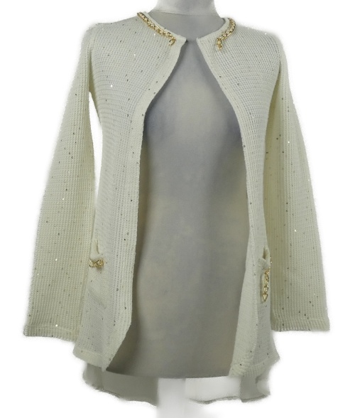 • Dámsky smotanový svetrový flitrový cardigan so šifonem a řemínkem