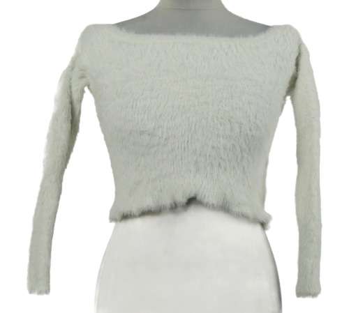 Dámsky biely chlpatý crop sveter s lodičkovým výstřihem H&M
