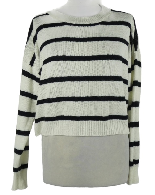 Dámsky bielo-čierny pruhovaný crop sveter Shein