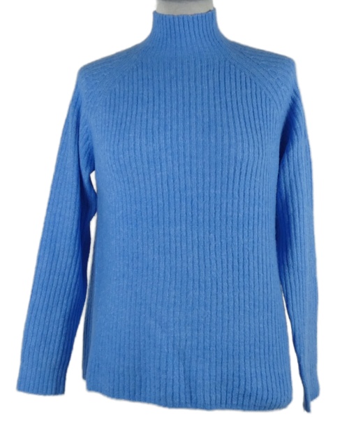 Dámsky svetlomodrý rebrovaný sveter so stojačikom Amisu