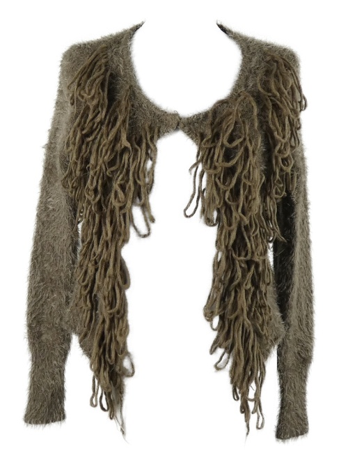 Dámsky béžový chlpatý svetrový cardigán s strapcemi Danity