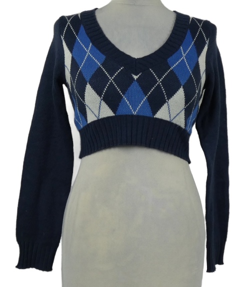 Dámsky tmavomodrý károvaný crop sveter H&M