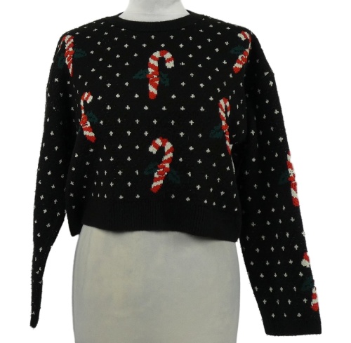 Dámsky čierny bodkovaný crop sveter s lízátky