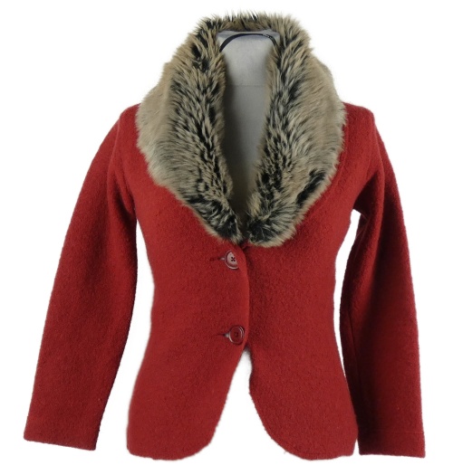 Dámsky červený prepínaci sveter s kožúškom s. Oliver