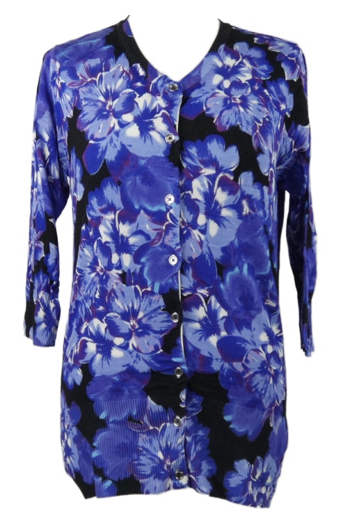 Dámsky fialovo-čierny kvetovaný prepínaci ľahký sveter