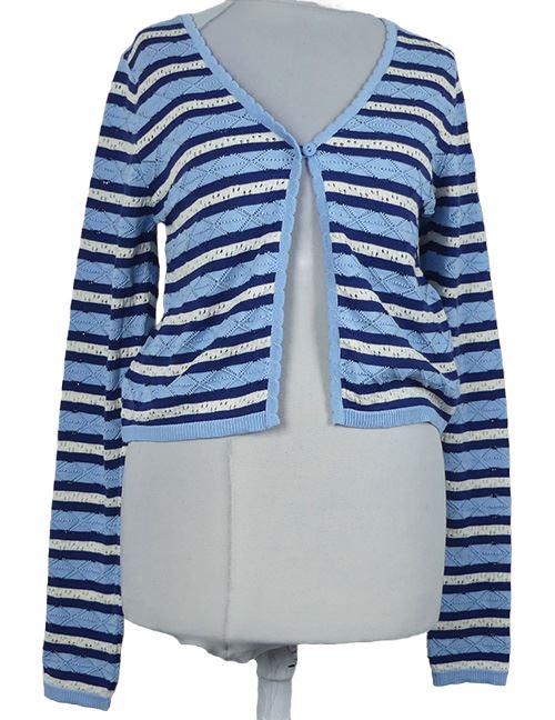 • Dámske světlemodro-tmavomodro-biely pruhovaný ažurový crop prepínaci sveter Asos