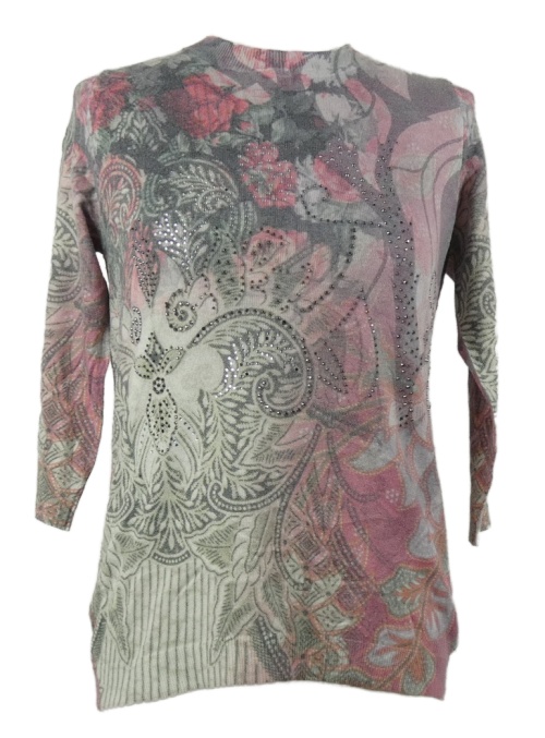 • Dámsky sivo-ružový vzorovaný ľahký sveter s kamienkami Bexley´s