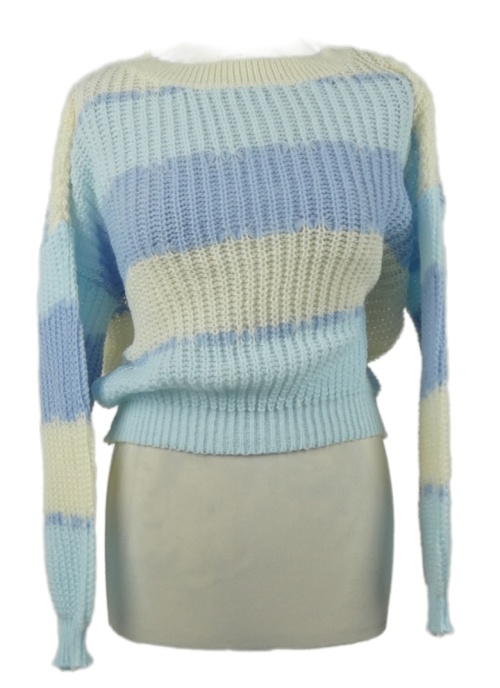 Dámsky světlemodro-biely pruhovaný crop sveter Shein