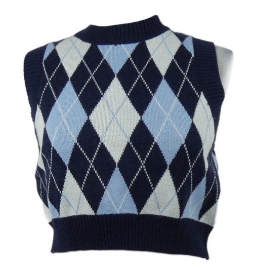 • Dámska tmavomodro-svetlomodrá károvaná svetrová crop vesta H&M
