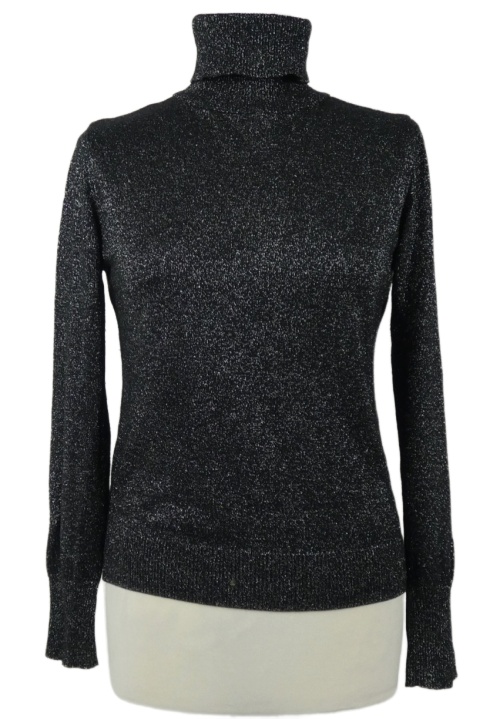 Dámsky čierny trblietavý ľahký sveter s rolákom TU
