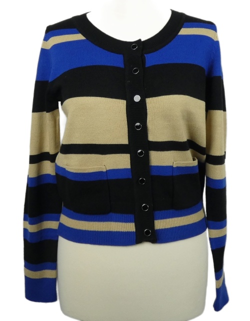 • Dámsky modro-čierno-béžový pruhovaný prepínaci crop sveter M&S