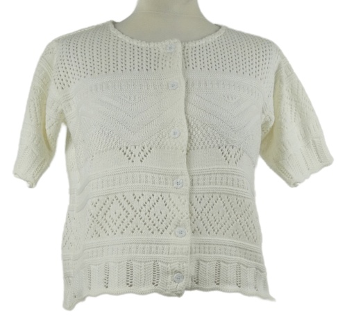 Dámsky biely ažurový prepínaci crop sveter s krátkymi rukávy