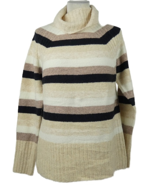 • Dámsky béžovo-tmavomodro-ružový pruhovaný svetrový rolák Next