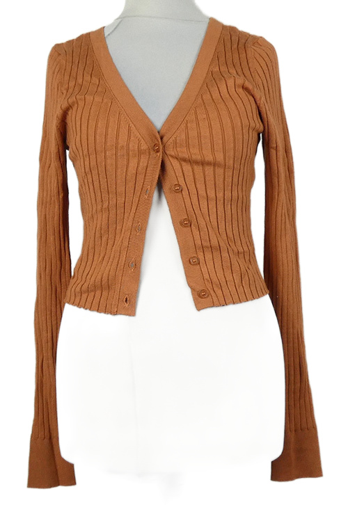 Dámsky skořicový rebrovaný crop prepínaci sveter 525