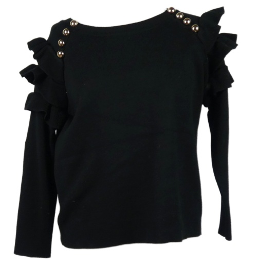 Dámsky čierny sveter s volániky s gombíky