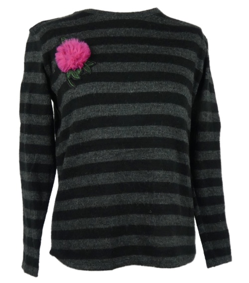 Dámsky čierno-sivý pruhovaný sveter s kvietkom Zara