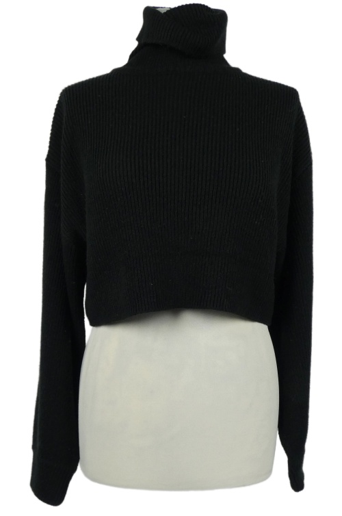 Dámsky čierny crop rebrovaný sveter s rolákom H&M