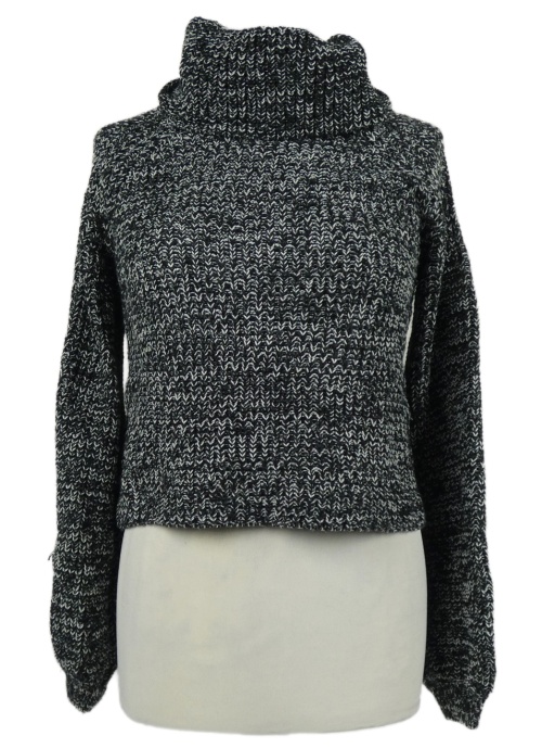 Dámsky čierno-biely melírovaný crop sveter s rolákom Shein