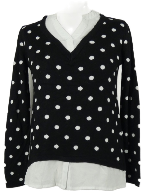 • Dámsky čierno-biely bodkovaný sveter s bílou halenkovou vsadkou Vivance