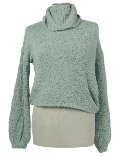 Dámsky svetlomodrý chlpatý svetrový crop rolák