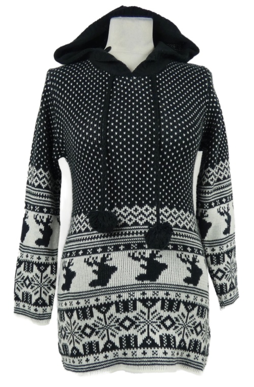 • Dámska čierno-biela vzorovaná svetrová tunika s kapucňou Qed London