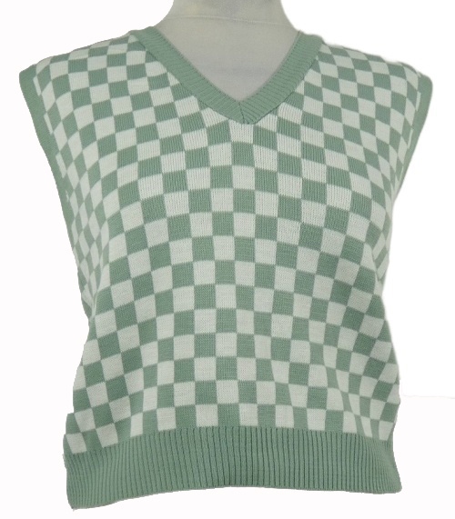 Dámska zeleno-biela kockovaná svetrová vesta HAZA